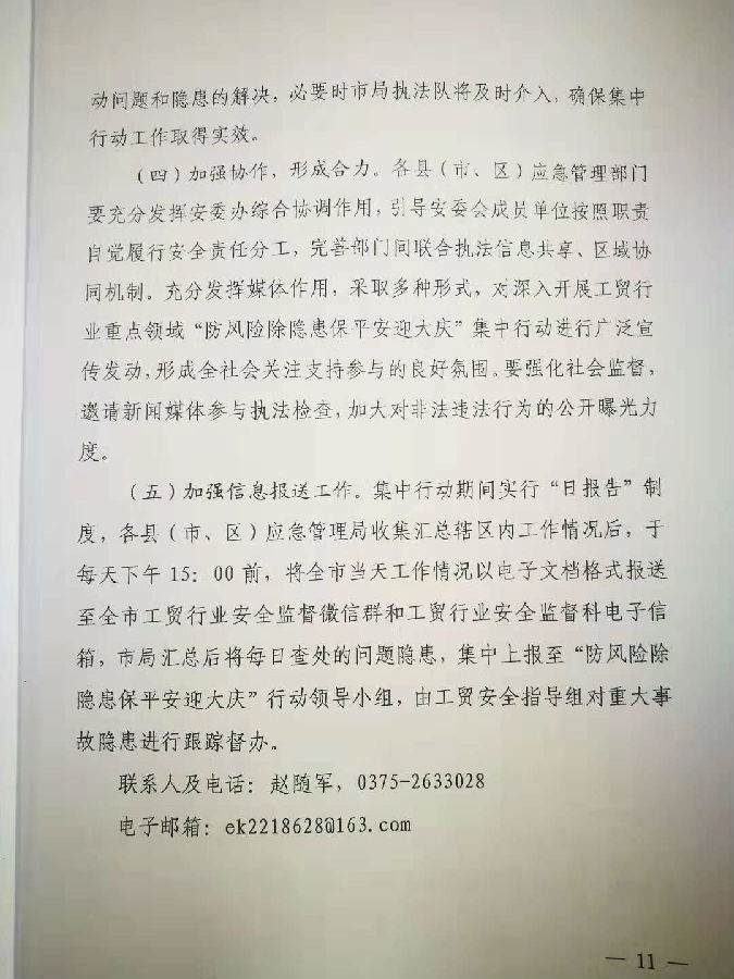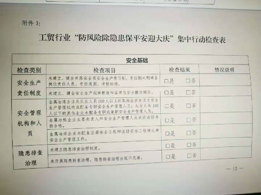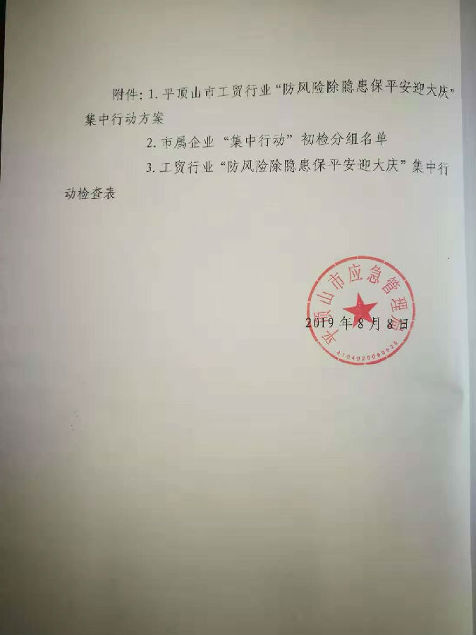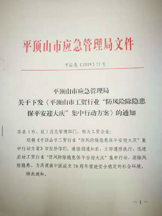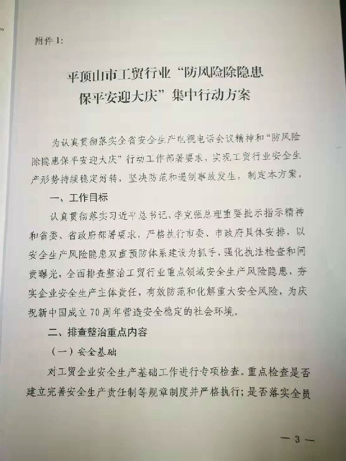 平顶山市应急管理局关于下发《平顶山市工贸行业 “防风险除隐患 保平安迎大庆” 集中行动方案》的通知